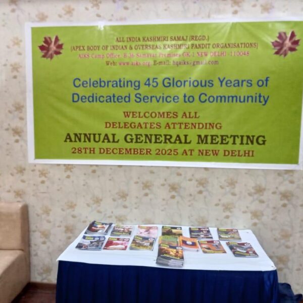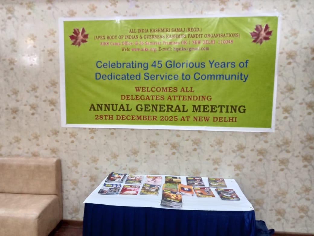 Photo Gallery Annual General Meeting 2025 December Saraswat Mahasammelan AIKS delegation calls on Registrar General (Census) AIKS CELEBRATES INTERNATIONAL MOTHER TONGUE DAY 2025 350th Martyrdom anniversary of Guru Teg Bahadur Ji - Kashmiri Pandits flag off Cycle Yatra marking AIKS CELEBRATES INTERNATIONAL MOTHER TONGUE DAY 2020 AIKS INTRA-COMMUNITY INTERACTION IN NCR ON 11TH JANUARY 2020 AIKS ROUND TABLE CONFERENCE ON 28TH SEPTEMBER 2019 AIKS CELEBRATES INTERNATIONAL MOTHER TONGUE DAY 2019 AIKS CONCLAVE 16 MARCH 2019 AMAR BALIDAN TRUST, JAMMU ON 26TH DECEMBER 2018 AIKS TEAM VISITS SHARIKA FOUNDATION, JAMMU ON 26TH DECEMBER 2018 EXECUTIVE MEET AT JAMMU ON 25TH DECEMBER 2018 GENEXT MEET AT JAMMU ON 24TH DECEMBER 2018 AIKS CELEBRATES ACCESSION DAY 26.10.18 CHETNA DIVAS SPORTS PERSON FRIENDSHIP SERIES ORGANISED BY AIKS, Jammu Rising Stars V/s Gurugram Stars (U-16) AIKS AND JKVM FELICITATE SHRI AJAY BHARTI, MLC AIKS DONATES PHYSICAL FITNESS MACHINE TO ORZU GYM, JAGTI ON 26.03.2017 AIKS TRUST INITIATES MANY WELFARE SCHEMES IN JAGTI TOWNSHIP PRESENTATION OF KASHMIR GAURAV SAMMAN - 2017